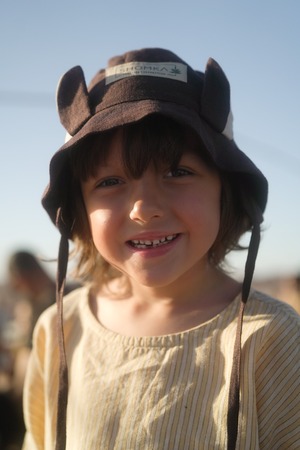 可愛い動物の帽子を被って