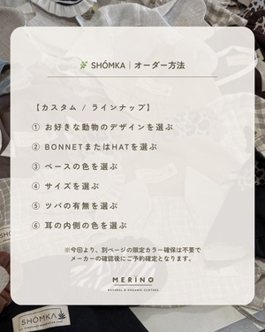 ※帽子2個以上のご注文でSHÓMKAシュシュ1個プレゼント。(帽子と同色)